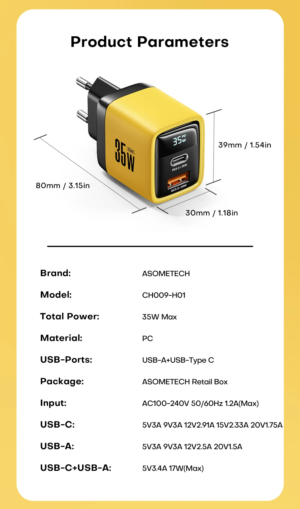 💪【Indicador LED + Display Digital】: Carregador ASOMTECH 35W com indicador LED de coluna e display digital LCD, você pode ver o valor real da potência de saída ao carregar.