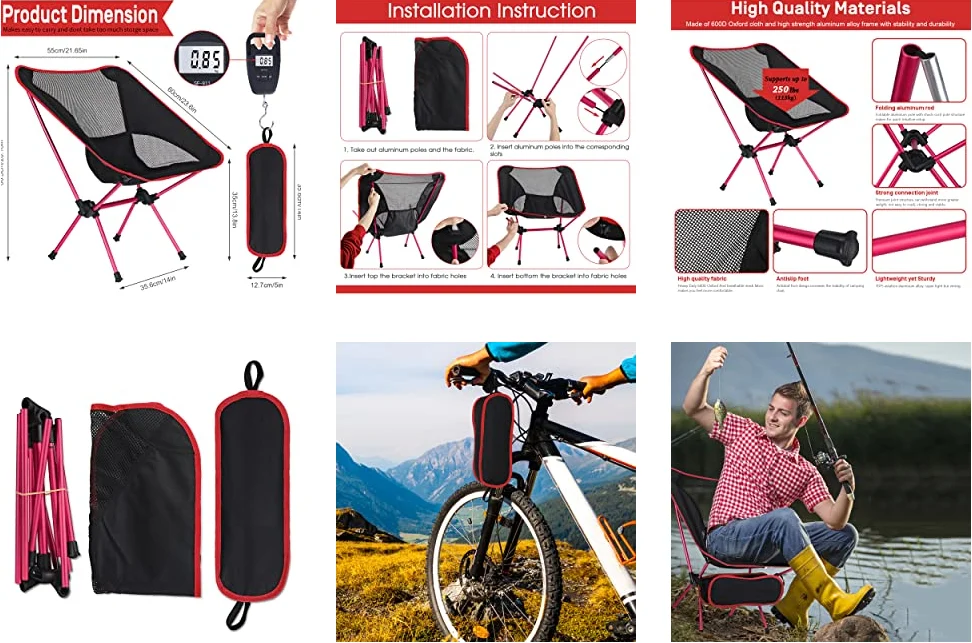 Cadeira dobrável de alumínio portátil é o apoio que você precisa de uma cadeira conveniente on-the-go. A cadeira portátil é construída de liga de alumínio premium e material de nylon para lidar com até 350 libras de peso. A cadeira é simples de descompactar e configurar, e o material está em conformidade com a forma do seu corpo para aumentar o conforto. É o amigo perfeito para mochileiros, tailgaters, caminhantes, campistas, concertos, aventuras e muito mais!