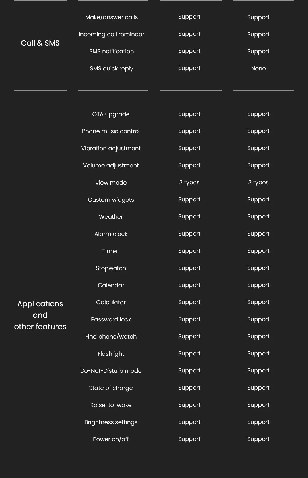 Bluetooth calls, answer/reject a call, one-tap connection prompt,voice assistant, password lock, SOS, AOD