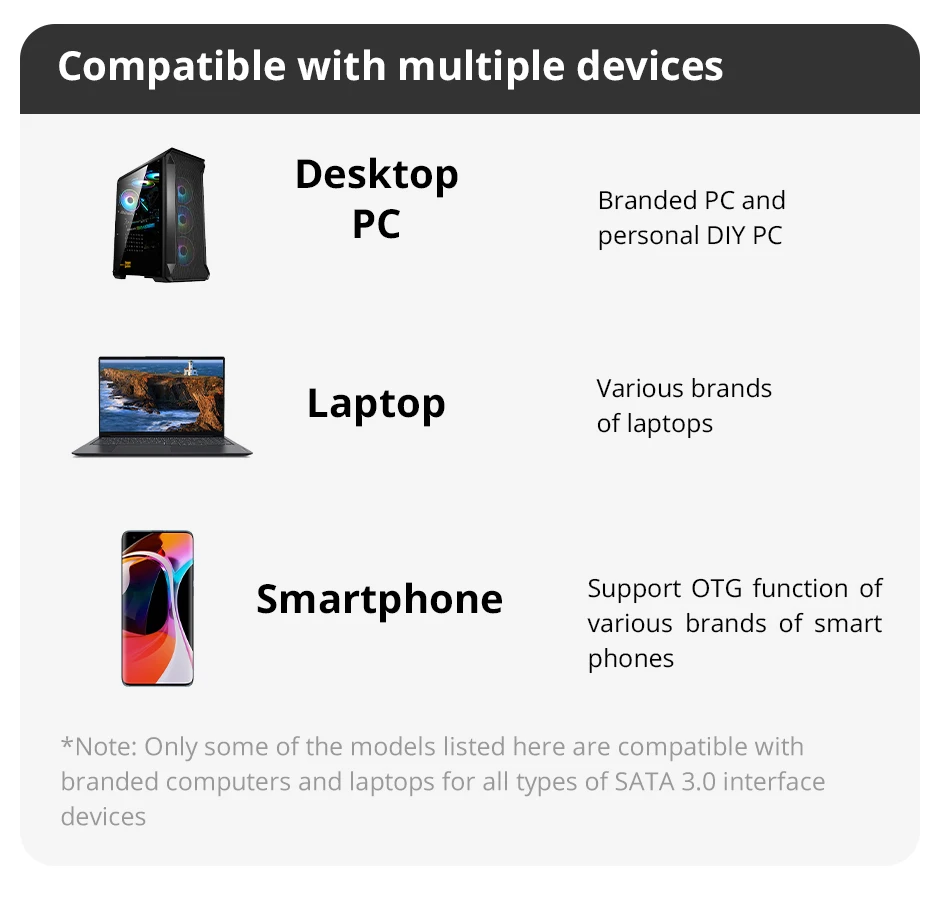 Equipamento aplicável: computadores desktop, telefones celulares, laptops e mais dispositivos